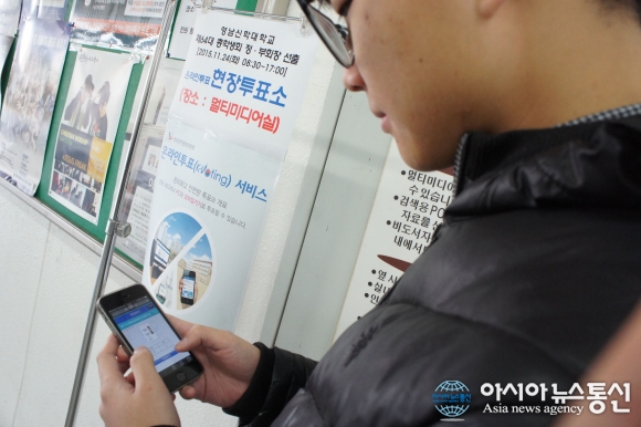 24일 경산시선거관리위원회가 온라인투표(K-Voting)를 통해 영남신학대학교 총학생회 정.부회장 선출을 지원하고 있다.(사진제공=경산시선거관리위원회) 경북 경산시선거관리위원회는 24일 경북에서 처음으로 온라인투표(K-Voting)를 통해 대학교 총학생... 2015-11-24