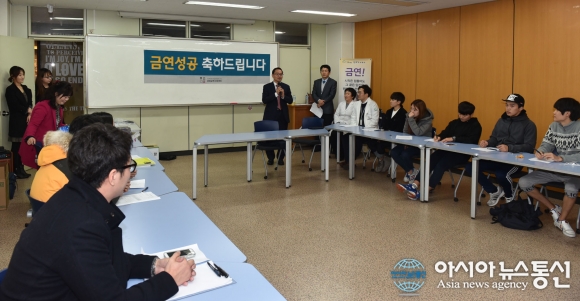 금연학생들에게 장학증서 및 금연배지 수여, 금연유지자 추가 장학금 지급<...