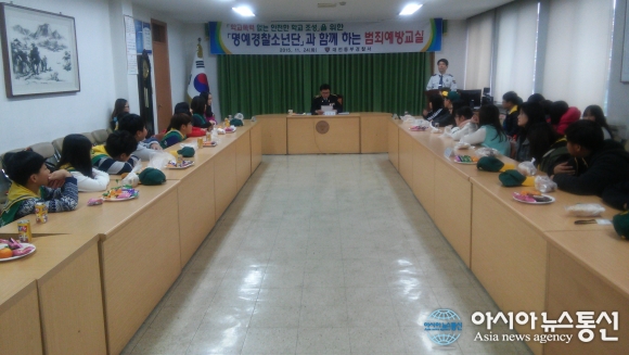 24일 대전동부경찰서는 어울림방에서 '명예경찰 소년단' 범죄예방교실을 운영했다.(사진제공=대전동부경찰서) 대전동부경찰서(서장 유재성)는 24일 어울림방에서 '명예경찰 소년단' 범죄예방교실을 운영했다. 이날 범죄예방교실에... 2015-11-24