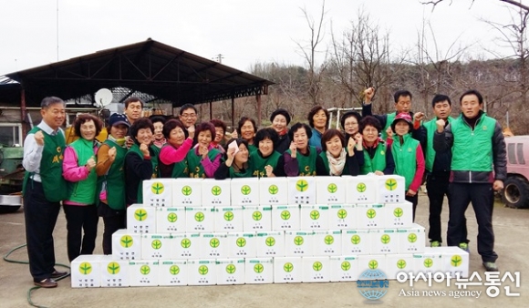 24일 권영철 경북 상주시 낙동면장(맨 왼쪽)이 낙동면새마을회(회장 성영준.구남숙)가 주관한 김장담그기 행사에 참석해 남녀새마을지도자 30여명과 함께 김장을 담근 후 기념사진을 찍고 있다. 이날 담근 김장김치 200포기는 관내 41개 경로당 및 독거노인 10호에 전달될 ... 2015-11-24