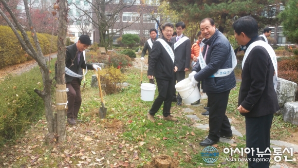 23일 한국폴리텍Ⅱ대학 인천캠퍼스 교직원들이 나무에 비료주기 및 조림목 월동보호 등의 행사를 진행하고 있다.(사진제공=한국폴리텍대학 인천캠퍼스) 한국폴리텍Ⅱ대학 인천캠퍼스(학장 김소림)는 봄철에 심은 나무가 잘 자랄 수 있도록 보살피고 녹... 2015-11-24