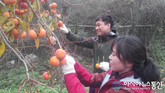 24일 일손 돕기에 나선 경남 진해경찰서 청렴동아리 ‘곰메회’ 회원들이 마산 한 단감농가에서 단감을 따고 있다.(사진제공=진해경찰서) 경남 진해경찰서(서장 박장식) 청렴동아리 ‘곰메회’는 24일 일손부족으로 어려움을 겪고 있는 단... 2015-11-24