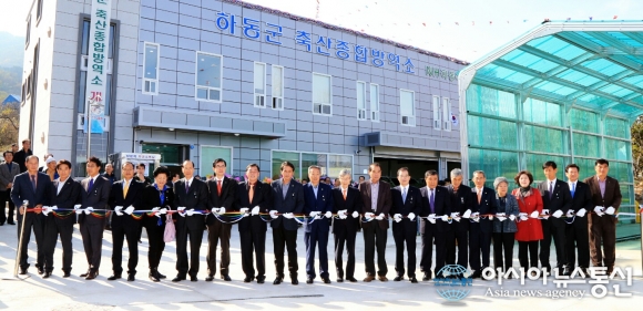 경남 하동군 축산방역소 개소식이 24일 진교면 안심리에서 열리고 있다.(사진제공=하동군청) 이상기후 등으로 갈수록 구제역·조류인플루엔자(AI) 같은 가축 질병이 기승을 부리는 가운데 하동군이 24시간 무인 자동소독이 가능한 축산차량 거점소... 2015-11-24