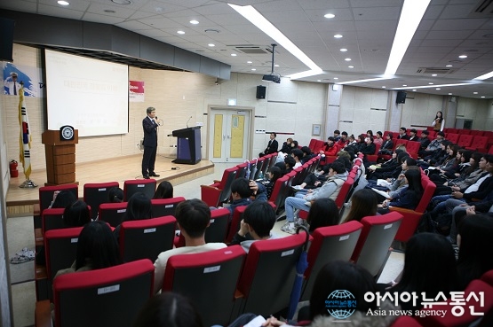 23일 이세민 충북경찰청 차장(연단)이 경찰시험을 준비하는 학생들을 대상으로 특강을 가졌다.(사진제공=충청대학교) 이세민 충북경찰청 차장이 23일 경찰시험을 준비하는 학생들을 대상으로 특강을 가졌다. 이 차장은 이날 충청대 도서관 세미나실... 2015-11-24