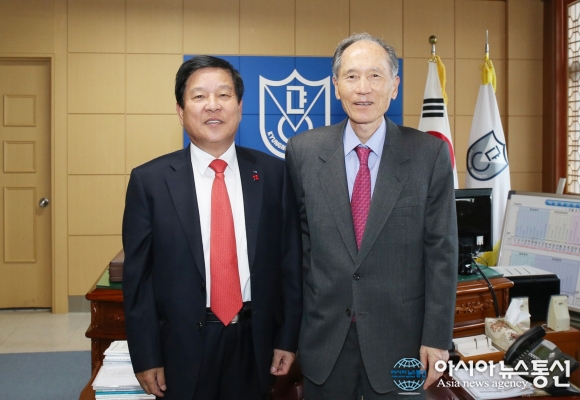 24일 오후 경남대학교 총장실에서 최충경 창원상공회의소 회장이 박재규 총장에게 ‘북한대학원대학교 통일연구기금’ 2억원을 전달한 후 함께하고 있다.(사진제공=경남대) 최충경 창원상공회의소 회장이 24일 오후 1시30분 경남대 총장실에서 &l... 2015-11-24