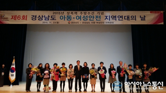 경남아동·여성안전지역연대의 날 우수기관 표창 모습.(사진제공=창녕군청) 경남 창녕군은 23일 경남도 신관 대강당에서 열린 '제6회 경남아동.여성안전지역연대의 날' 행사에서 경상남도 우수기관으로 선정돼, 경남도지사 기관표창을 수... 2015-11-24