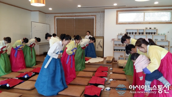 24일 오전 고령군 대가야읍 다례원에서 고령군이 관내 거주 결혼이민여성 25여명을 대상으로 전통예절교육을 실시하고 있다.(사진제공=고령군청) 경북 고령군은 24일 오전 대가야읍에 소재한 다례원에서 관내 거주 결혼이민여성 25여명을 대상으로 전... 2015-11-24
