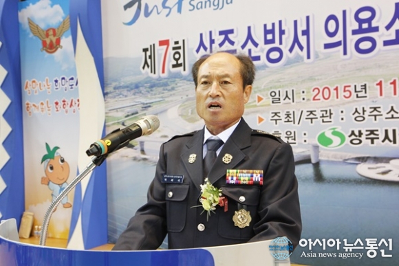 23일 박희국 경북 상주소방서 의용소방대연합회장이 개회식에서 대회사를 하고 있다./아시아뉴스통신=김철희 기자 경북 상주소방서 남여의용소방대연합회(회장 박희국ㆍ송정순)가 주관하는 '제7회 상주소방서의용소방대 소방기술경연대회'가... 2015-11-24