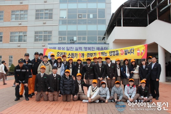 충남 아산소방서는 23일 음봉중학교 인근에서 주택용 소방시설 설치 촉진 가두 홍보 및 119캠페인을 실시했다.(사진제공=아산소방서) 충남 아산소방서(서장 이종하)는 23일 음봉중학교(아산시 음봉면 소재) 인근에서 소방공무원 및 음봉중학교 119소년단 3... 2015-11-24
