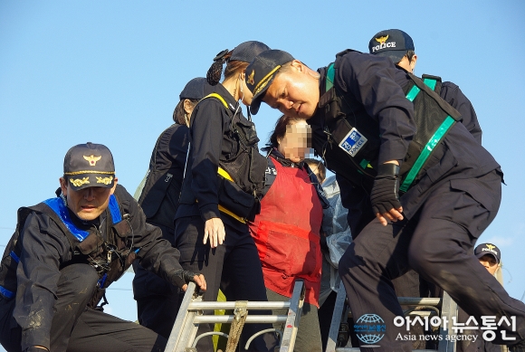 23일 지난달 29일 경기 평택시 용죽개발지구 카센터에서 강제퇴거 조치에 보상비가 낮다며 분뇨 등을 뿌리고 저항하던 카센터 주인 A씨(55)와 B(44)용죽철대위 위원장 구속됐다. 사진은 29일 오후 3시 50분쯤 연행되는 주민 모습. /아시아뉴스통신=이석구 기자 ... 2015-11-24