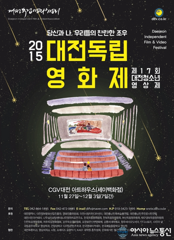 ‘2015 제9회 대전독립영화제’ 포스터.(사진제공=대전시청) 대전·세종·충남 등 충청권 지역 영상인들의 축제인 ‘2015 대전독립영화제’가 대전CGV(세이백화점) 7관 아트하우스에서 오는 27일 개막식을 갖고 다음 달 3일까지 7일간의 ... 2015-11-24