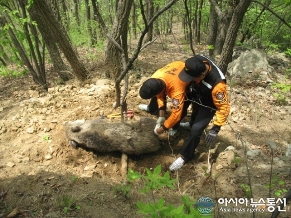 멧돼지 모습./아시아뉴스통신 DB 충남 서천군은 야생동물로 인한 농작물 피해 증가에 따라 야생동물의 적정 개체수 유지와 농작물 피해예방을 위해 지난 20일 순환 수렵장을 개장했다고 24일 밝혔다. 서천군 수렵장 허가인원은 673명이며 수렵 허가동... 2015-11-24