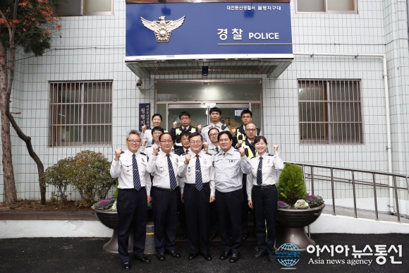 23일 김귀찬 대전지방경찰청장이 월평지구대를 방문해 '10월 베스트 순찰팀' 으로 선정된 순찰 1팀을 표창했다.(사진제공=대전둔산경찰서) 대전둔산경찰서는 23일 김귀찬 대전지방경찰청장이 월평지구대를 방문해 ‘10월 베스트 순찰팀&rsquo... 2015-11-24