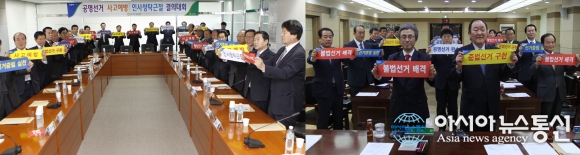 왼쪽은 경북농협의 3대악 근절 결의대회 모습, 오른쪽은 대구농협의 3대악 근절 결의대회 모습.(사진제공=대구.경북농협) 대구.경북농협은 24일 대구.경북관내 사무소장과 임직원 등을 대상으로 '농협중앙회장 공명선거, 사고예방, 인사청탁근절, ... 2015-11-24