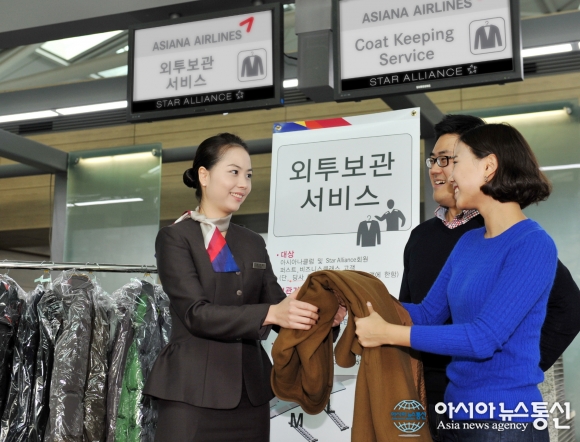 아시아나 항공의 '외투 보관 서비스' 시행 모습.(사진제공=아시아나 항공) 아시아나항공(사장 김수천)이 오는 1일부터 2월 29일까지 국제선 탑승객의 외투를 무료로 보관해주는 '외투 보관 서비스'를 시행한다. 아시아나항공의 '외... 2015-11-24