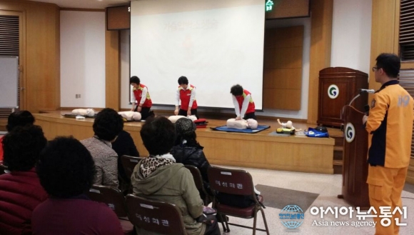 17일 경산여성회관에서 경산소방서 중앙119안전센터가 여성대학 학생 및 직원들을 대상으로 심폐소생술 교육을 실시하고 있다.(사진제공=경산소방서) 경북 경산소방서 중앙119안전센터(센터장 홍성종)는 17일 경산여성회관에서 여성대학 학생 및 직원 8... 2015-11-18
