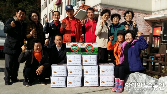 지난 16일 인천시옹진군농업대학 졸업생 43명이 사랑의 김장 담가주기 행사를 진행하고 영흥면 관내 요양시설과 무의탁 홀몸노인 등 총10kg씩 50세대에 전달하고 있다.(사진제공=인천옹진군청) 인천시옹진군농업대학 졸업생( 2기 회장 김현무) 43명은 지난... 2015-11-18