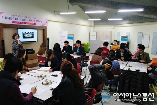 17일 충북 충주시청 상상마루에서 행복한 가정을 위한 공무원가족교육이 열린 가운데 참가한 신혼·예비부부들이 교육을 듣고 있다.(사진제공=충주시청) 충북 충주시가 가족친화 직장문화 조성을 위해 신혼부부와 결혼을 앞둔 예비부부를 대상으... 2015-11-18