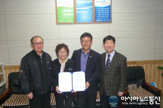 18일 충북 보은군 마로면 강동희ㆍ이호복씨 부부가 마로면장학회에 장학기금을 전달하고 기념촬영하고 있다. 왼쪽부터 강동희씨, 이호복씨, 김봉현 마로장학회장, 윤광훈 마로면장.(사진제공=보은군청) 충북 보은군은 18일 마로면으로 귀농한 한 부부... 2015-11-18