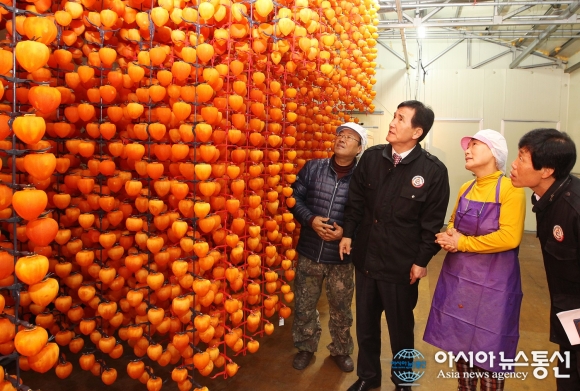 16일 임창호 경남 함양군수가 곶감농가를 방문하고 있다.(사진제공=함양군청) 임창호 경남 함양군수는 지난 16일 명품곶감생산에 박차를 가하고 있는 7개 농가를 찾아 농가의 애로사항을 청취하고 피해상황을 점검했다. 군은 올해 함양명품곶감 생산... 2015-11-18