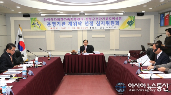 16일 경남 산청군청 소회의실에서 '산청군다문화가족∙건강가정지원센터' 운영기관 재위탁 선정 심사위원회가 열리고 있다.(사진제공=산청군청) 경남 산청군은 지난 16일 오후 2시 군청 소회의실에서 내년 2월29일자로 종료 되는 산청군다문... 2015-11-18