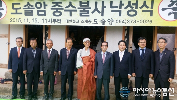 지난 15일 청도군 적천사 도솔암에서 중수불사를 완료하고, 낙성식을 갖고 있다.(사진제공=청도군청) 경북 청도군(군수 이승율)은 지난 15일 적천사 도솔암에서 중수불사를 완료하고, 낙성식을 가졌다. 이날 이승율 청도군수와 예규대 청도군의회 의... 2015-11-18