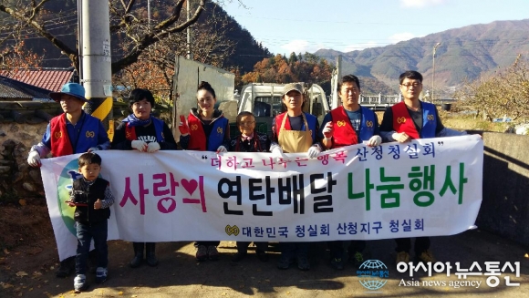 15일 경남 산청 청실회 회원들이 관내 기초생활수급자 등 저소득층에 연탄 나눔행사를 갖고 사진촬영 모습.(사진제공=산청군청) 경남 산청 청실회(회장 허성태)가 지난 15일 관내 기초생활수급자 등 저소득층 7세대에 연탄 2100장(100만원 상당)을 전달했... 2015-11-18