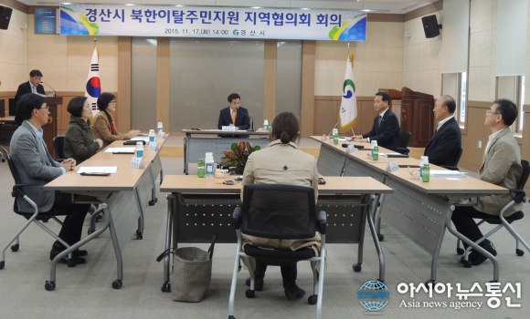 17일 경산시청 별관 회의실에서 2015년 하반기 '경산시 북한이탈주민지원 지역협의회' 회의가 열리고 있다.(사진제공=경산시청) 경북 경산시(시장 최영조)는 17일 시청 별관 회의실에서 2015년 하반기 '경산시 북한이탈주민지원 지역협의회'... 2015-11-18