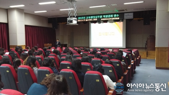 17일 인천서부교육지원청이 소속 초․중학교 교무행정실무원, 전산실무원 129명을 대상으로 대강당에서 올해 교무행정지원인력에 대한 역량강화 연수를 진행하고 있다.(사진제공=인천서부교육지원청) 인천서부교육지원청(교육장 손홍재)은 소속 초&... 2015-11-17
