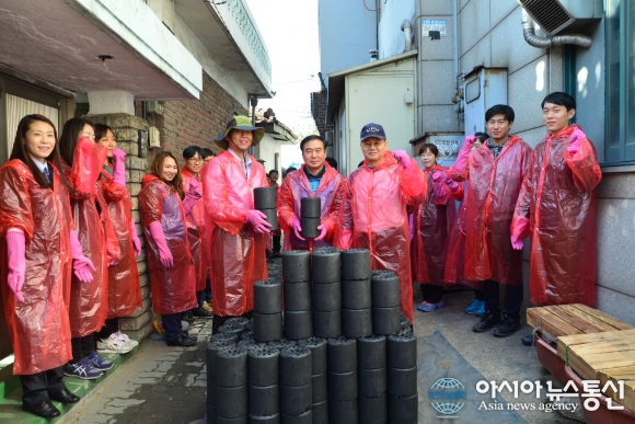 17일 인천본부세관이 인천 중구 일대 장애인 등 소외 계층 10가구에 각각 200장씩 총 2000여장의 연탄을 전달하고 기념촬영을 하고 있다.(사진제공=인천본부세관) 인천본부세관(세관장 차두삼)은 17일 사랑의 연탄 나눔 활동을 펼쳐 인천 중구 일대 장애인 ... 2015-11-17