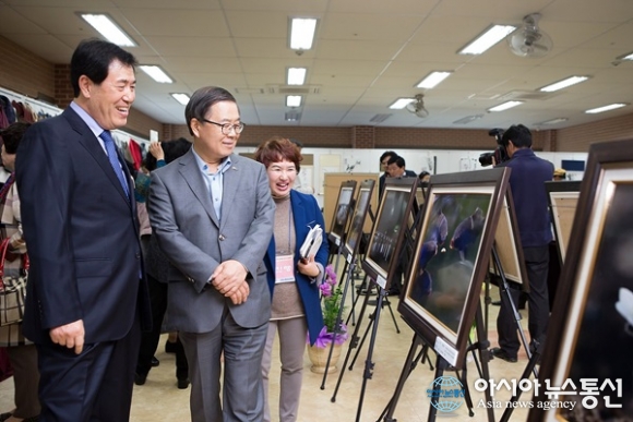 17일 남유진 경북 구미시장이 구미시평생교육원 수강생들의 종합작품 전시회에 들러 사진작품을 감상하고 있다.(사진제공=구미시청) 경북 구미시 평생교육원은 17일 수강생 종합작품 전시 및 발표회를 가졌다. 오는 19일까지 이어지는 이번 전시.발... 2015-11-17