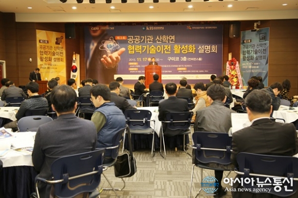 17일 경북 구미시 구미코 3층 컨벤션센터에서 열린 공공기관 산학연 협력기술이전 활성화 설명회 모습.(사진제공=금오공대) 금오공과대학교(총장 김영식)가 산.학협력을 통해 창조경제를 확산하기 위한 '제3회 공공기관 산학연 협력 기술이전 활성... 2015-11-17