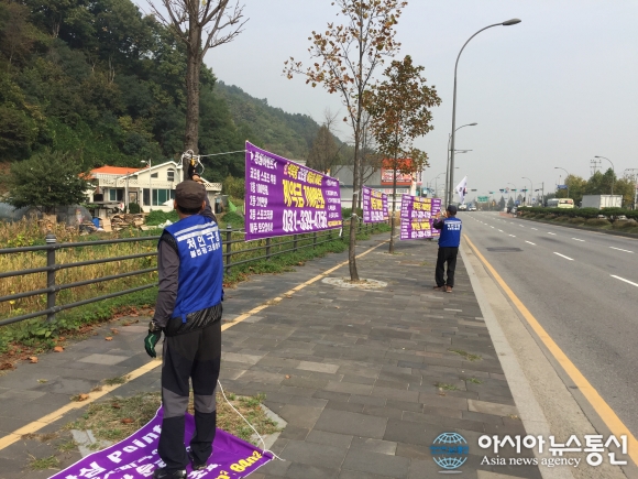용인시가 도시미관 저해하는 불법광고물을 단속하고 있다.(사진제공=용인시청) 용인시가 도시미관을 저해하는 불법현수막, 쓰레기 무단투기, 불법노점상, 불법주차 등 4대 분야에 대해 집중 관리에 나섰다고 17일 밝혔다. 이는 전국에서 가장 안전하... 2015-11-17