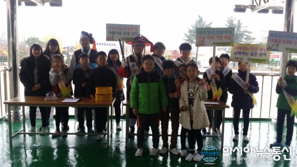 17일 대전중부경찰서는 대전 중구 옥계초등학교에서 전교생을 대상으로 등굣길 캠페인을 실시했다.(사진제공=대전중부경찰서) 대전중부경찰서(총경 최성환)는 17일 대전 중구 옥계초등학교에서 전교생을 대상으로 학교 폭력 없는 행복한 배움터 조... 2015-11-17