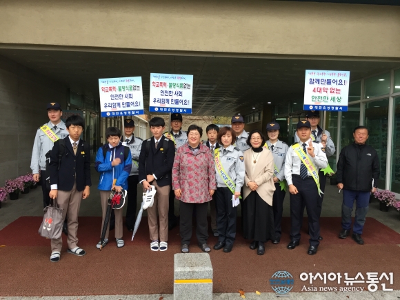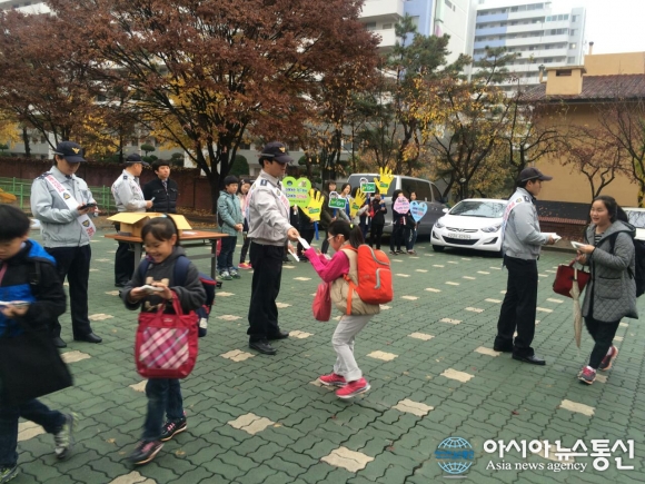 17일 대전둔산경찰서는 대전만년초등학교에서 등굣길 학생들을 대상으로 등굣길 안전 활동을 실시했다.(사진제공=대전둔산경찰서) 대전둔산경찰서(서장 김기용)는 17일 대전 서구 만년동 대전만년초등학교에서 등굣길 학생들을 대상으로 학교전담... 2015-11-17