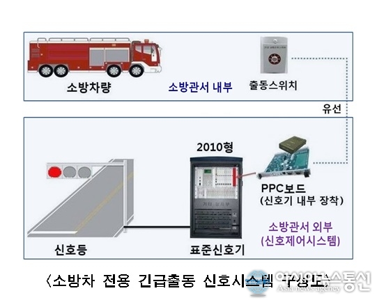 '소방차 전용 긴급출동 신호시스템' 구성도.(사진제공=서울시) 서울시(시장 박원순)가 지난해 시내 32개소 119안전센터 앞에 '소방차 전용 긴급출동 신호시스템'을 구축한 이후, 소방 긴급출동 차량의 출동시간이 '평균 24초' 빨라진 ... 2015-11-17