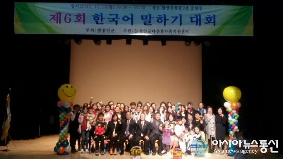 16일 경남 함안문화원 2층 공연장에서 한국어교육 수강생과 다문화가족 등 70여명이 참석한 가운데 결혼이주민 대상 ‘제6회 한국어 말하기대회’가 열렸다.(사진제공=함안군청) 경남 함안군 다문화가족지원센터(센터장 조은옥)는 16일 함안문화원 ... 2015-11-17