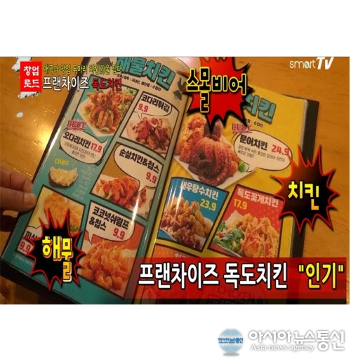 스마트TV뉴스 창업로드'독도치킨' 방송캡처본.(사진제공=독도치킨) 프랜차이즈 ‘독도치킨’이 화제가 되고 있다. 한국 소자본창업협회에서 올해의 소자본창업추천아이템으로 공식 선정됐기 때문이다. 해물, 치킨, 스몰비어라는 3가지... 2015-11-17
