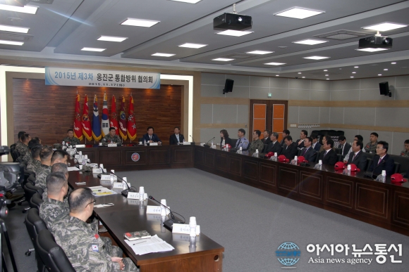 17일 제3차 옹진군통합방위협의회가 해병대 사령부 대회의실에서 진행되고 있다.(사진제공=인천옹진군청) 제3차 옹진군통합방위협의회가 17일 해병대 사령부 대회의실에서 개최됐다. 옹진군통합방위협의회(의장 조윤길)는 한반도를 둘러싼 안보환... 2015-11-17