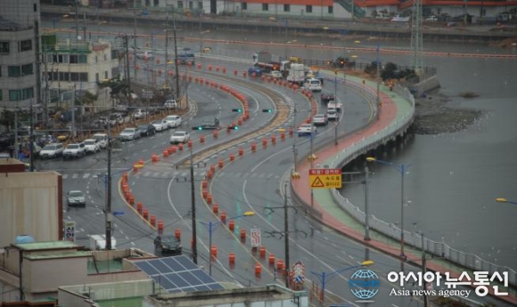 경남 창원시 마산합포구 산호동 해안도로 공사 구간 전경.(사진제공=창원시청) 경남 창원시는 17일 그동안 도로굴곡이 심해 교통안전사고가 빈번히 발생했던 마산합포구 산호동 해안도로(180m)의 확장∙선형개량공사를 오는 12월 중순쯤 완료할 계획... 2015-11-17