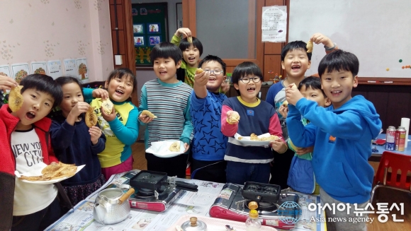경북 울진군 온정면 백암온천단지에 자리잡은 온정초등학교 학생들이 방과후 학교활동을 마친 후 선생님들이 직접 만든 특별한 간식인 붕어빵을 나눠 먹으며 환하게 웃고 있다.(사진제공=온정초) 경북 울진의 백암온천단지에 자리 잡은 작은 학교인 ... 2015-11-14