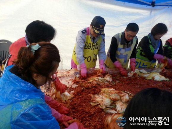 지난 13일 천동파출소는 ‘김장 나눔 대축제’에 참가했다. 경찰과 효동 복지 만두레 등 13개 기관·단체와 함께 김장을 담그고 있다.(사진제공=대전동부경찰서) 대전동부경찰서 천동파출소(소장 안언산)는 다가오는 겨울을 맞이해 13일 가... 2015-11-14