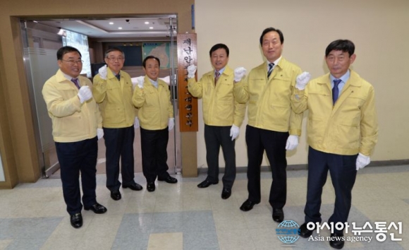 유덕열 동대문구청장을 대신해 강병호 부구청장(오른쪽 세 번째)이 지난 13일 동대문구청 재난안전대책본부(7층)에서 열린 제설대책본부 개소식에 참석해 완벽한 재난대비를 다짐하며 기념촬영을 하고 있다.(사진제공=동대문구청) 서울 동대문구(구... 2015-11-14