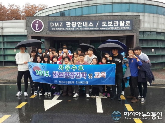 13일 한국자유총연맹 안산시지회는 국제비지니스고등학교 다문화학생 대표 20명과 교사, 학부형 20명 1대1멘토로 파주 제3땅굴, 임진각, 도라산 전망대, 도라산역 안보현장 견학을 다녀왔다고 밝혔다.(사진제공=자유총연맹 안산시지회) 한국자유총연맹 안... 2015-11-13