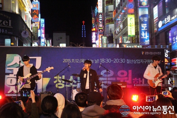 12일 오후 6시 30분부터 3시간가량 경기 광명시청소년수련관은 철산상업지구 원형광장에서 수험생 청소년을 위한 청소년에 의한 수능 격려 공연인 ‘수고했어, 오늘도’(부제: 수능 보느라 고생했어)를 진행했다.(사진제공=광명시청) 경기 광명시청... 2015-11-13