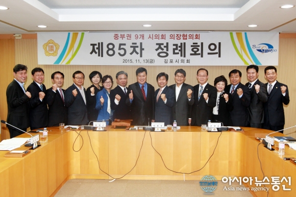 13일 경기도 중부권 의장협의회 제85차 정례회의 참석한 의장들이 기념사진을 찍고 있다.(사진제공=광명시의회) 경기도 중부권 의장협의회(회장 나상성, 광명시의회 의장)가 13일 김포시의회에서 제85차 정례회의를 개최했다. 김포시의회 주관으로 열린 ... 2015-11-13