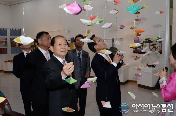 김충식(왼쪽) 군수가 창녕군규방공예 작품전시회를 둘러 보고 있다.(사진제공=창녕군청) 경남 창녕군농업기술센터가 후원, 창녕군규방공예연구회(회장 권옥순)가 주관하는 제10회 창녕군규방공예 작품전시회가 '인화낭자 솜씨전'이라는 주제... 2015-11-13