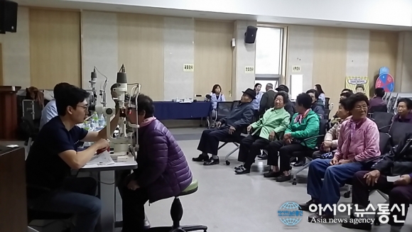 눈 정밀검진 모습.(사진제공=창녕군청) 경남 창녕군은 13일 창녕군보건소 2층 다목적 홀에서 지역 60세 이상 어른 180여명을 대상으로 한국실명예방재단과 함께 무료 눈 정밀검진과 개안수술 지원 안내를 시행했다. 보건소는 이날 눈 정밀검진을 통해 ... 2015-11-13