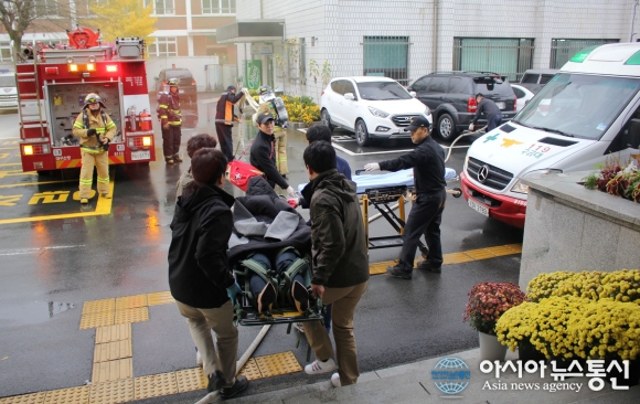 13일 달성경찰서 주차장에서 달성경찰서가 달성소방서와 2015년 합동소방훈련을 실시하고 있다.(사진제공=달성경찰서) 대구달성경찰서(서장 이근영)는 13일 달성경찰서 주차장에서 달성소방서와 2015년 합동소방훈련을 실시했다. 달성경찰서 직원 30여... 2015-11-13