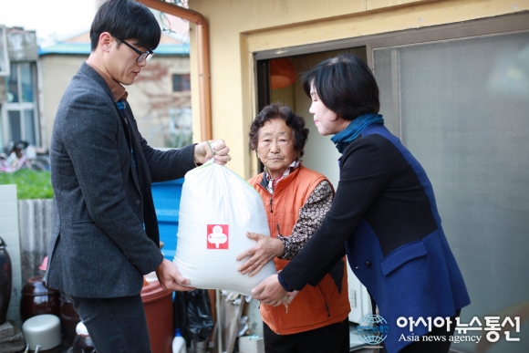 사랑의 쌀 전달 모습.(사진제공=밀양시청) 경남 밀양시 하남읍에는 10년 째 '얼굴 없는 사랑의 쌀 기탁자'가 있어 잔잔한 감동을 주고 있다. 익명의 기부자는 하남읍사무소(읍장 손차숙) 창고에 쌀을 야적하고 떠나면서 본인의 인적사항을 밝히... 2015-11-13